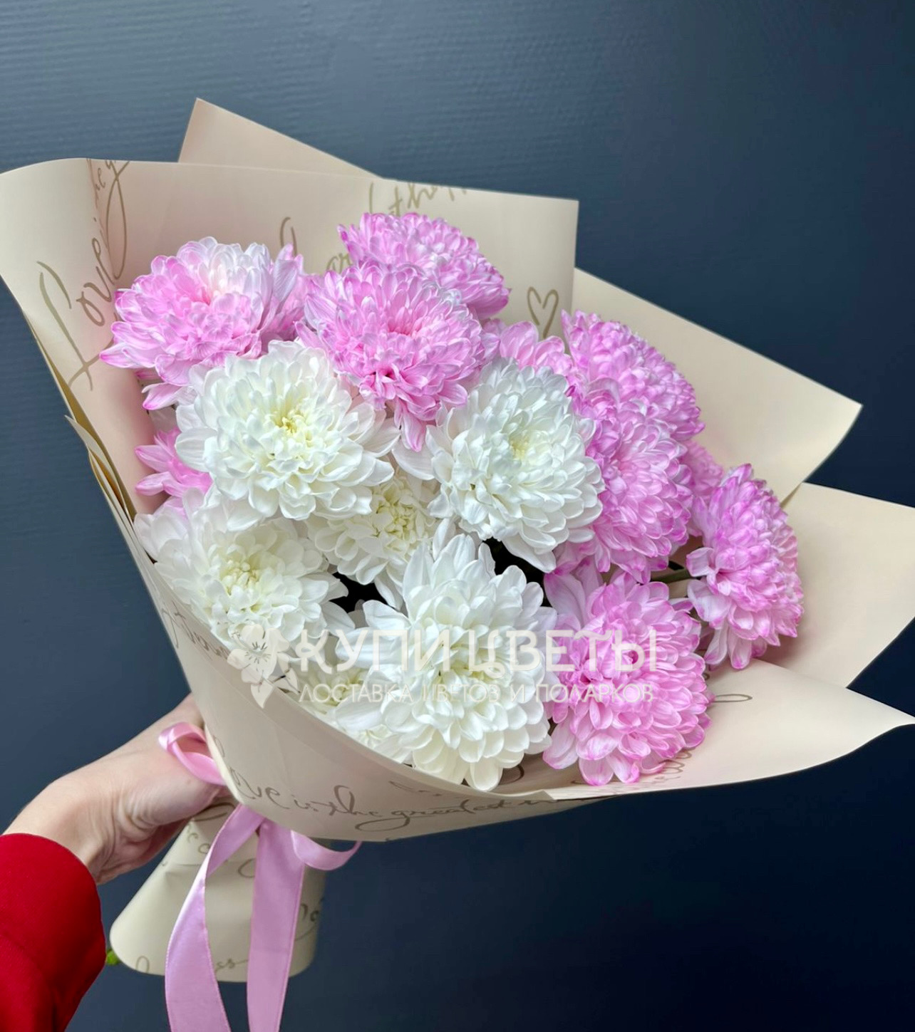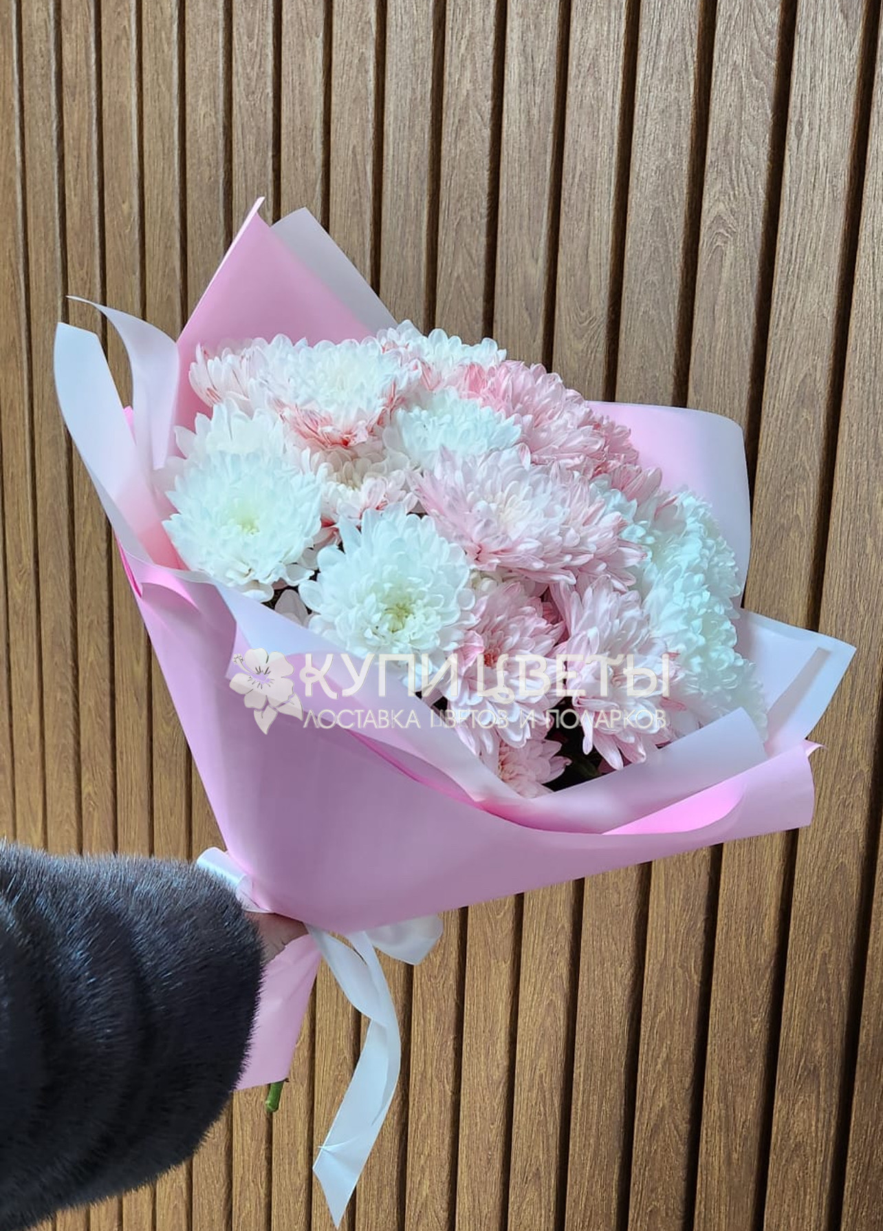 Кустовые хризантемы,упаковка,лента |