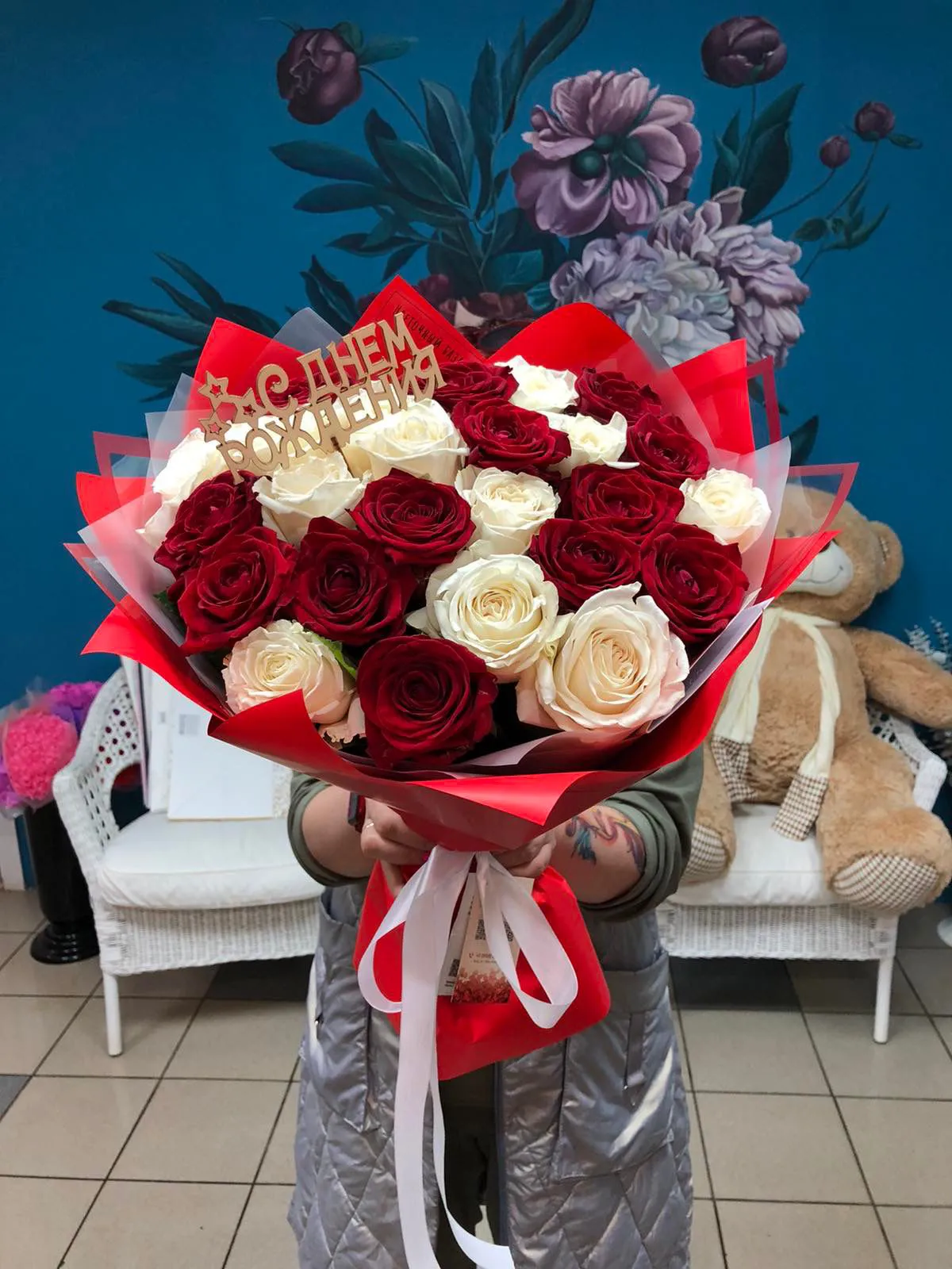Cостав данной композиции может незначительно поменяться, из-за отсутствия некоторых позиций или сезонности цветов.