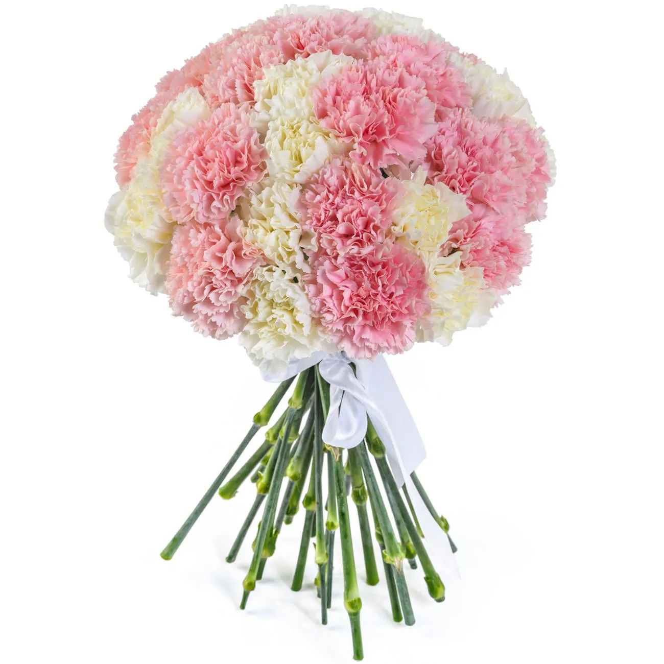 Букет из ,белых и нежно-розовых гвоздик можно преподнести и ребёнку – он вызовет неподдельный детский восторг.