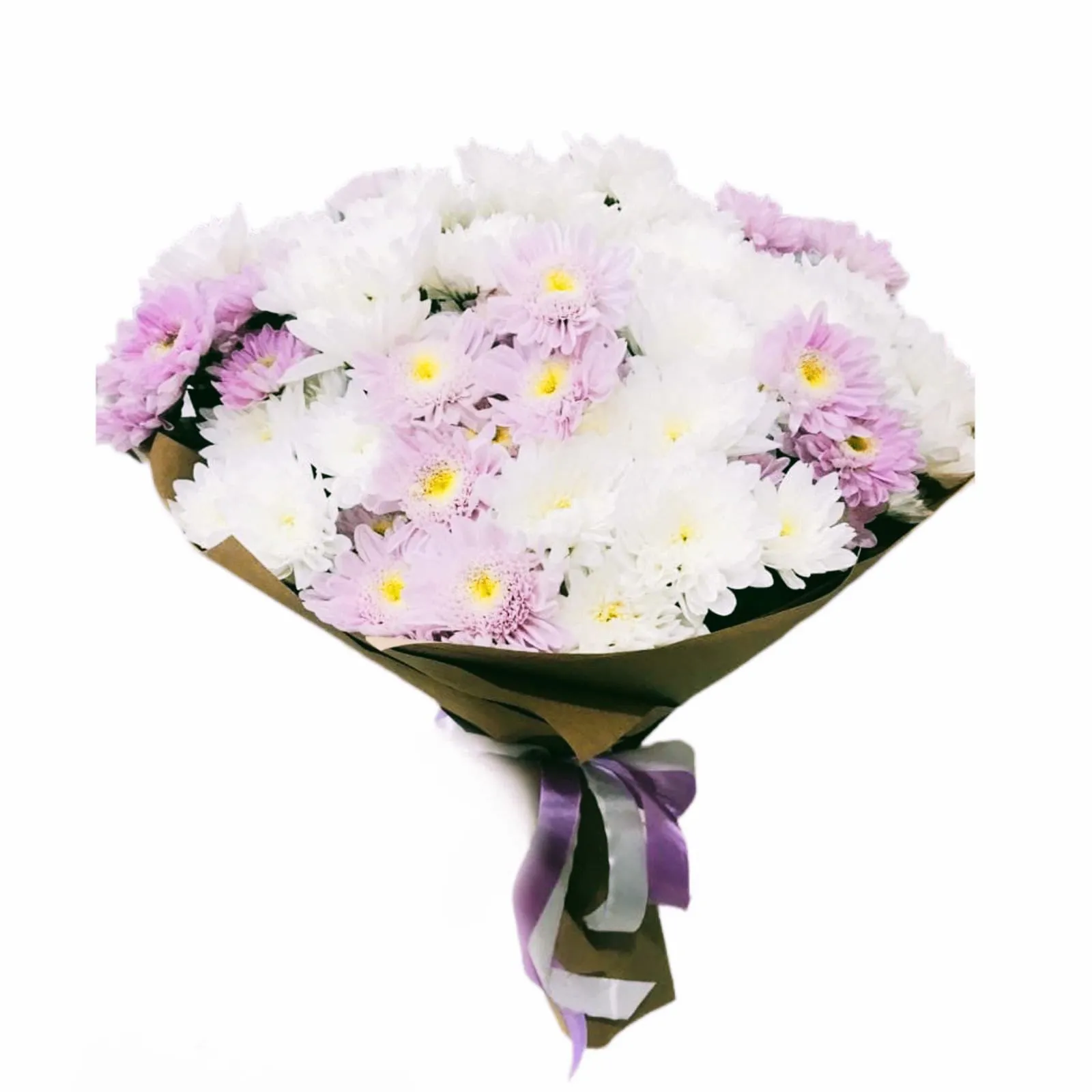 - Делюкс - кустовая хризантема - 15 шт., упаковка, лента