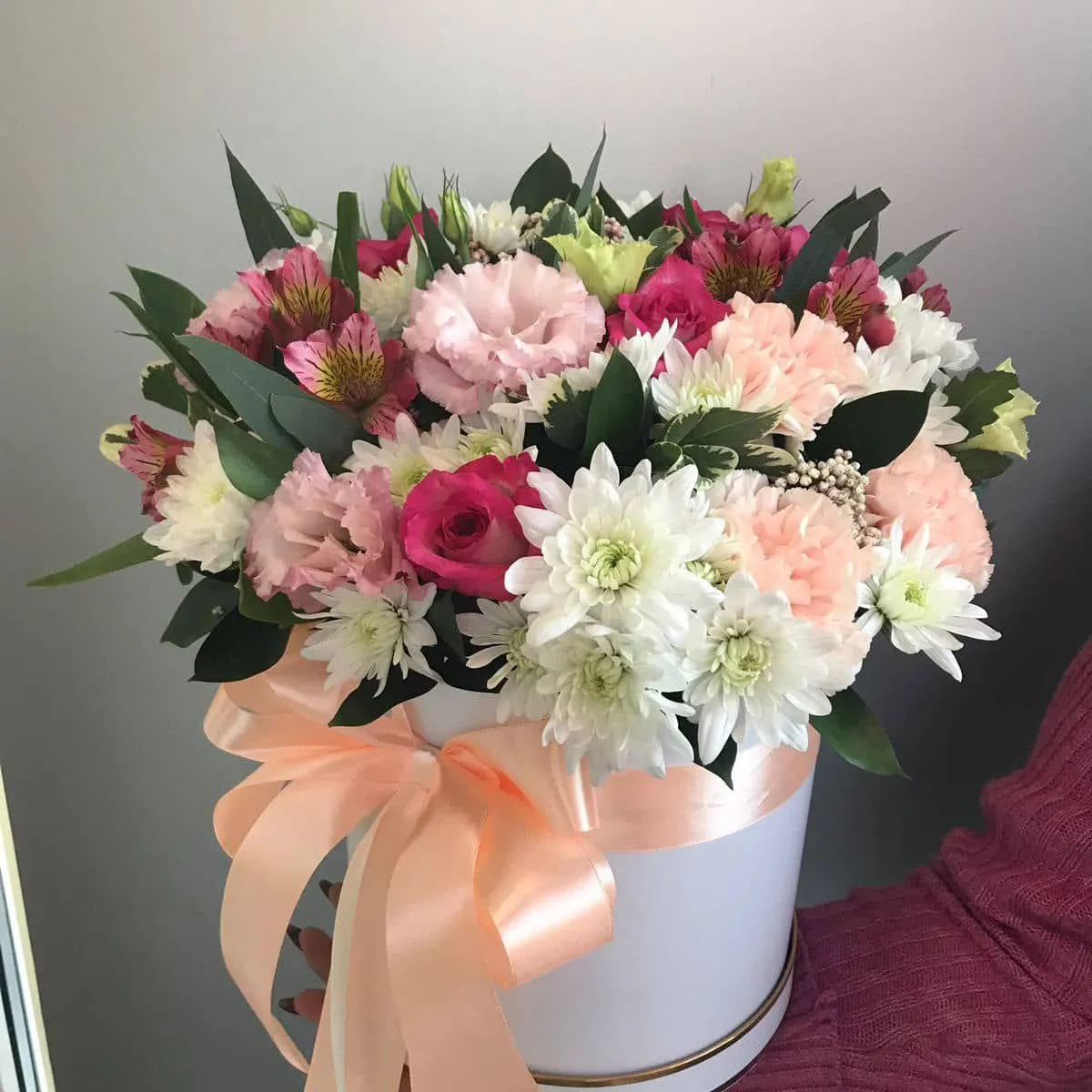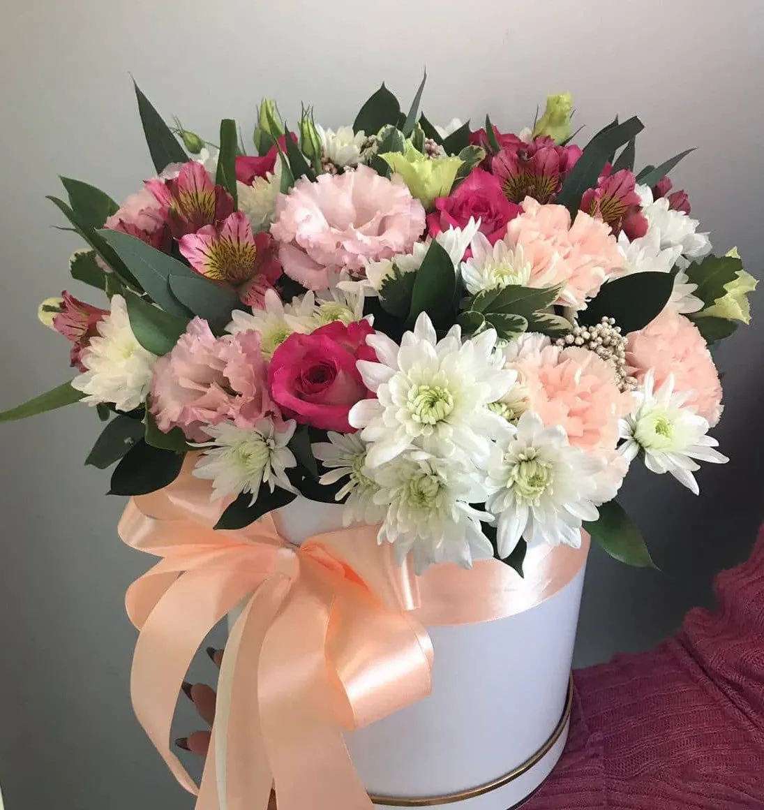 Каждый цветок в этой шляпной коробке словно рассказывает свою историю, создавая уникальное произведение искусства. Это идеальное решение для подарка, которое станет прекрасным украшением любого интерьера и подарит радость тому, кто его получит. Пусть эта композиция станет символом общения, любви и положительных эмоций!