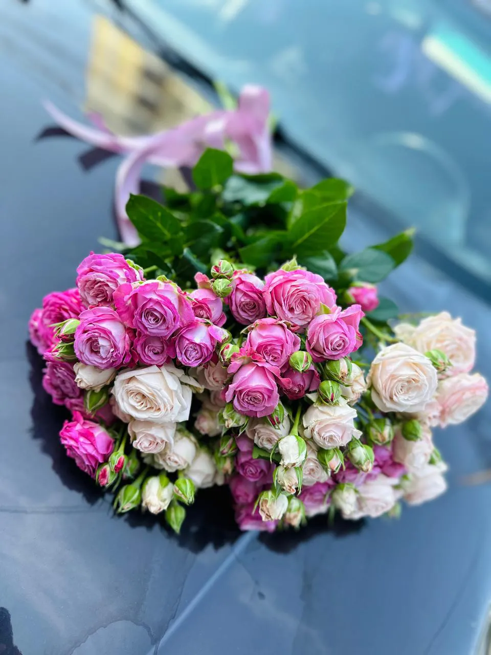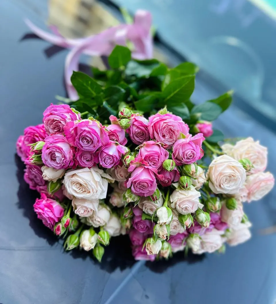- Средний - кустовая роза - 7 шт.,лента