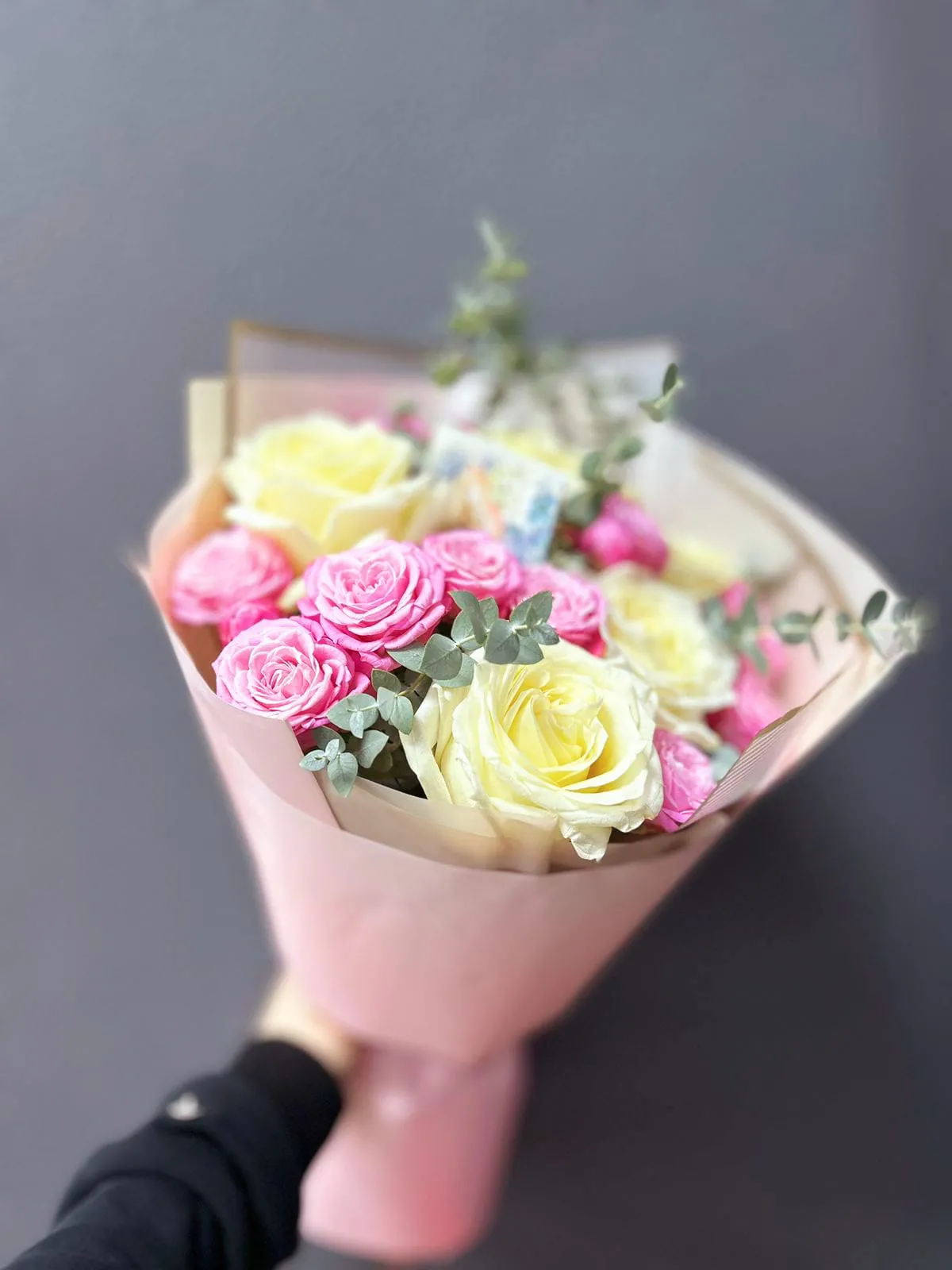 Cостав данной композиции может незначительно поменяться, из-за отсутствия некоторых позиций или сезонности цветов.