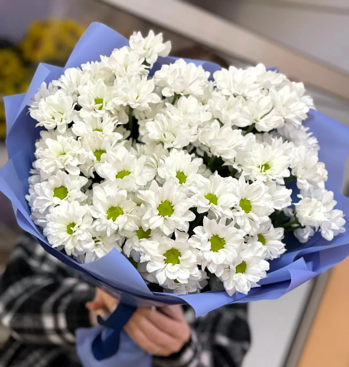 - Делюкс - кустовая хризантема - 15 шт., упаковка, лента