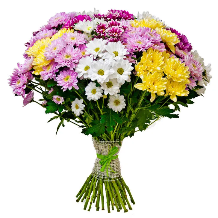 - Средний - кустовая хризантема - 7 шт., упаковка, лента