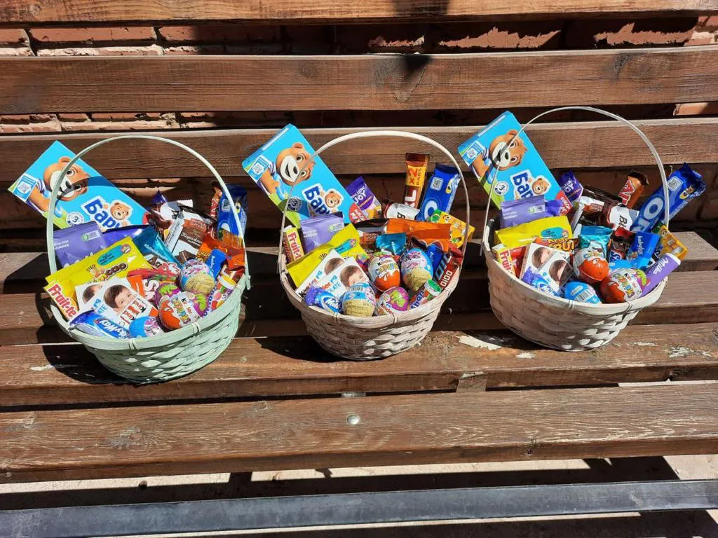Корзина с шоколадом и конфетами (Kinder, Nuts, Oreo, Bounty, Twix). |