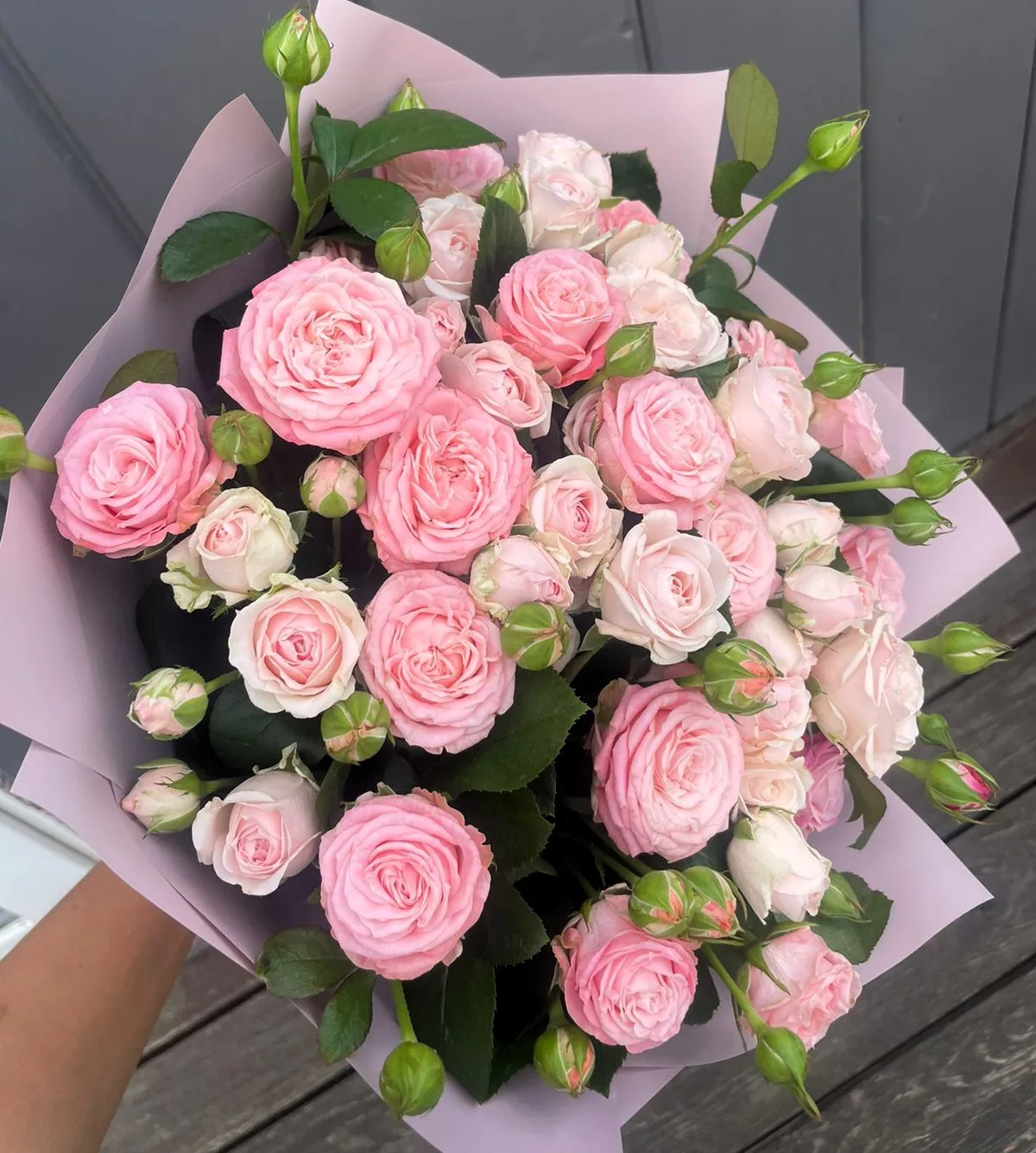 Такой букет станет прекрасным подарком для любого случая — от романтического вечера до праздника или дня рождения. Он способен передать эмоции без слов, напомнив о том, что красота может быть простой и искренней. Нежно розовые кустовые розы символизируют любовь, нежность и заботу, делая каждый момент особенным.